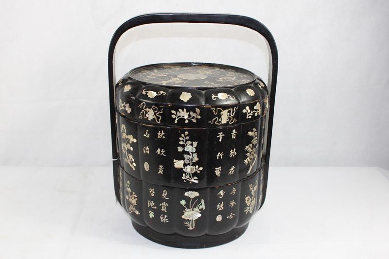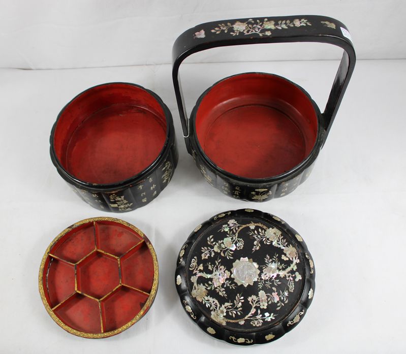 0556-Chinesischer Hochzeitskorb mit Perlmuttintarsien 19/20 Jh..