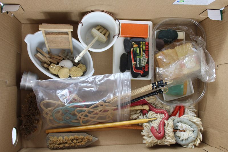 0559-Puppenstube Putz- Badeutensilien Konvolut