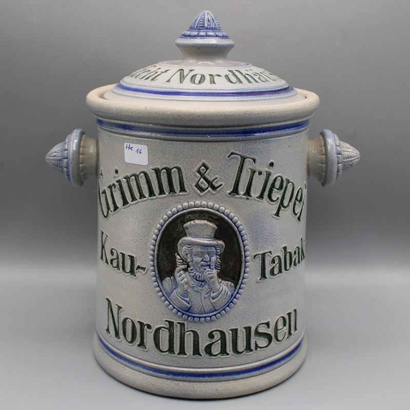 Grimm & Triepel Kautabak Nordhausen Tabaktopf Steinzeug 20 Jh.