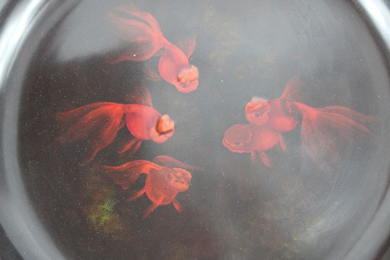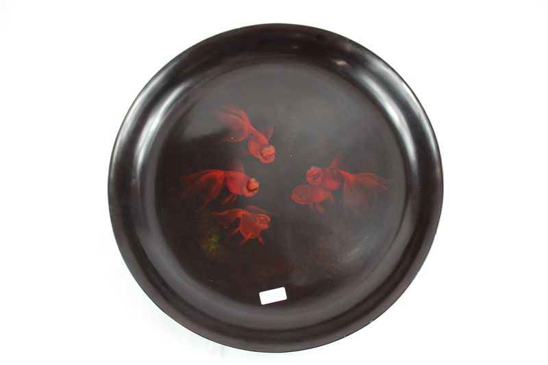 0561-Lacktablett mit Löwenkopf Goldfischen wohl Japan 20 Jh.