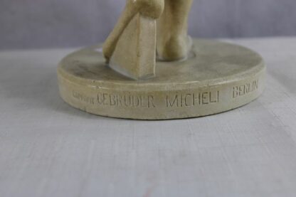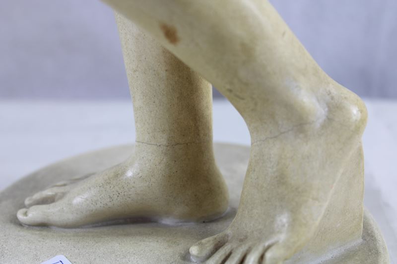 Reproduktion hergestellt von Gebrüder Micheli Berlin aus Carrarit (Gussmasse zur Imitation von Carrara-Marmor), im Sockel Rand "Carrarit GEBRÜDER MICHELI BERLIN", oben am Sockel Signatur "A. Volkmann fec. Roma", mehrere geklebte Brüche!, Finger beschädigt, ca. 57 cm