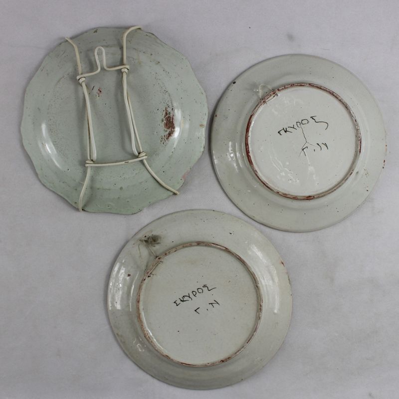 0585-Alte Fayence Teller bemalt mit Vögeln u. Blumen Konvolut 3 St.