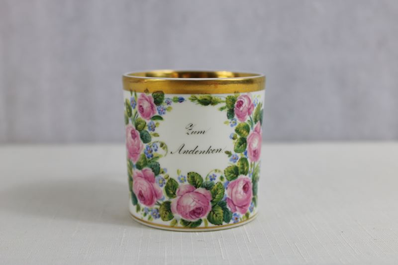 fein gemalter Blumenkranz mit Rosen, undeutliche Pressmarke