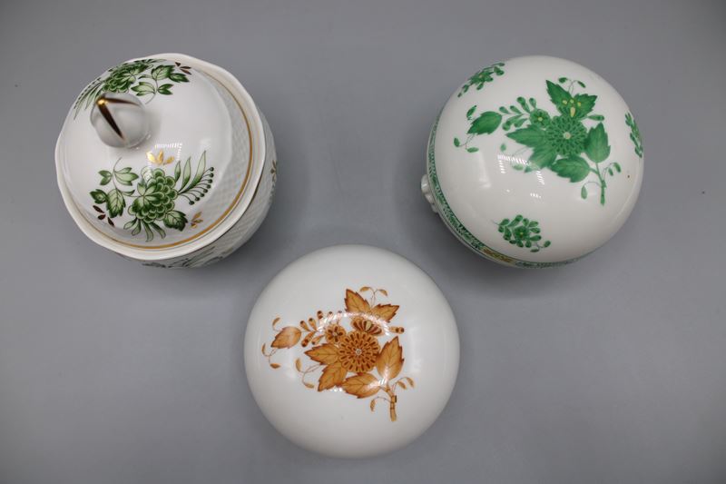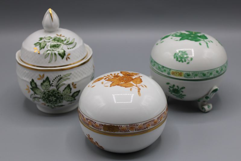 0599-Herend Hollohaza Porzellan Döschen 3 St.