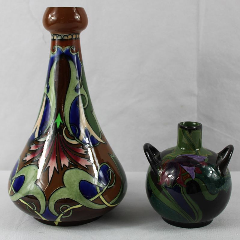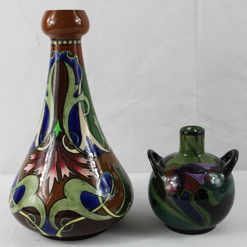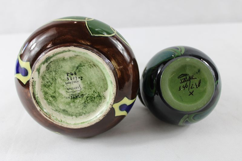 Late Foley Shelley England Intarsio etc. Vasen Konvolut 2-teilig 1. H. 20 Jh.