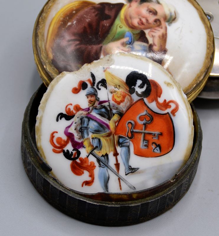 Konvolut kleine Döschen Behälter 19/20 Jhdt. 6-teilig, bei dem kleinen Behälter mit den Rocaillen ist das Scharnier gebrochen