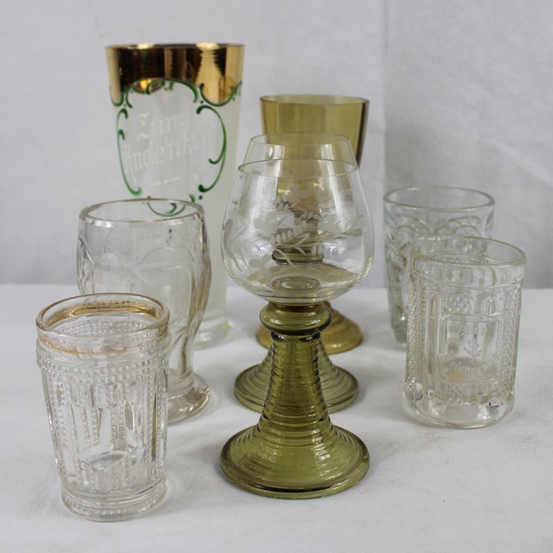 0615-Alte Weingläser Becher Konvolut 8 St. 19/20 Jh.
