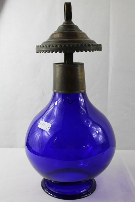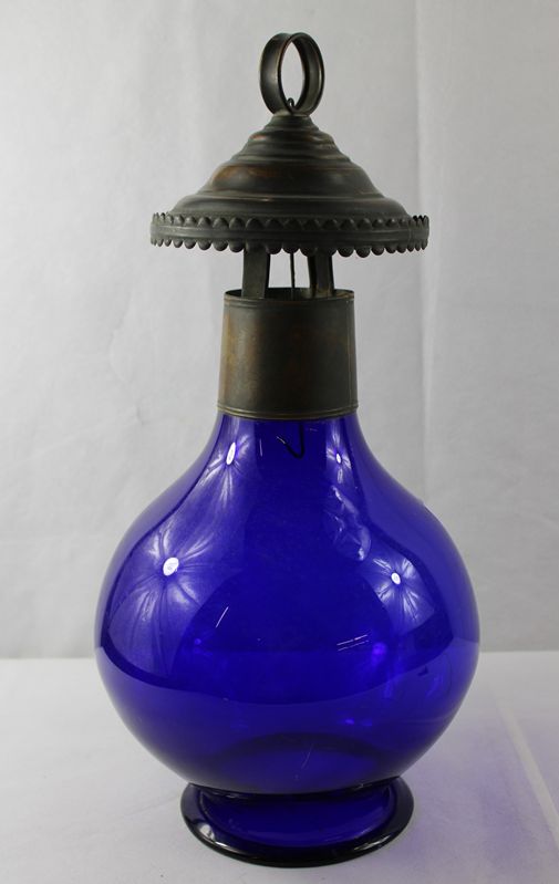 Biedermeier Laterne Grablaterne kobaltblaues Glas 19 Jh.