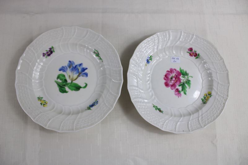 godronierter Korbflechtrand, florale Malerei, Ø 19 cm, 2 Schleifstriche