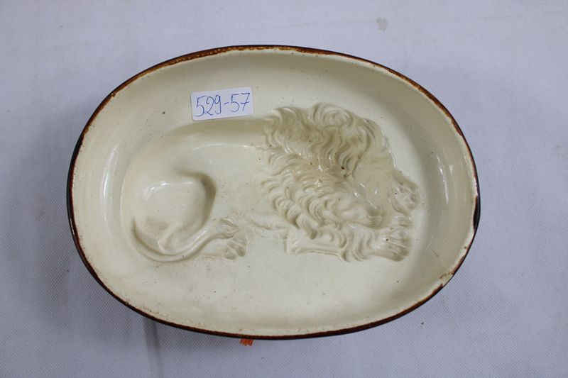 0619-Puddingform Backform Löwe Keramik um 1900