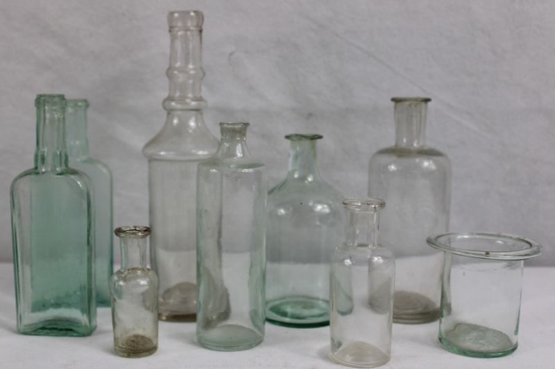 Fläschchen vorwiegend für Medizin u. Tintenglas Konvolut 9 St. 19/20 Jh.