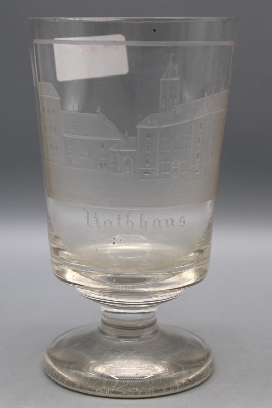 Fussbecher Ansichtenglas Böhmen 19 Jh.