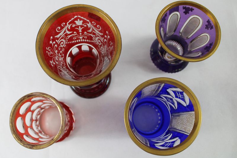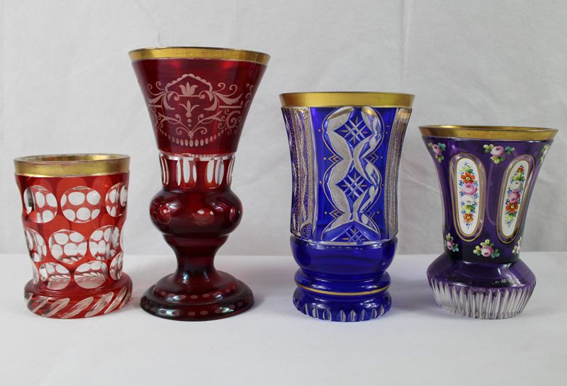 0627-Glasbecher im Biedermeierstil Böhmen Konvolut 4 St.