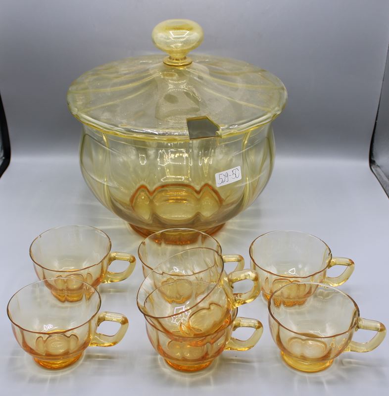 0627-Uranglas Bowle Set mit 7 Gläser braunes Glas