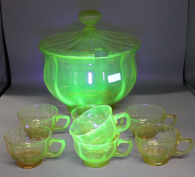 Uranglas Bowle Set mit 7 Gläser braunes Glas