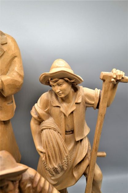 Konvolut bäuerliche Schnitzfiguren Pfeifenraucher, Knecht etc., 50, 37 u. 29cm