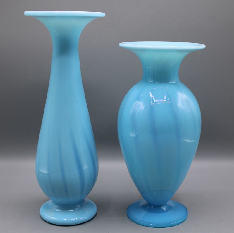 Opalglas Vasen blau 2 St. ca. 23 u. 27 cm