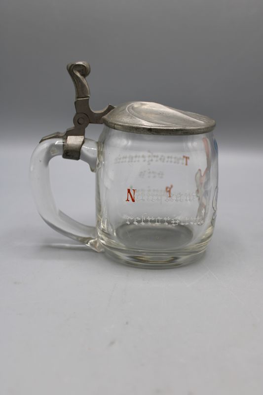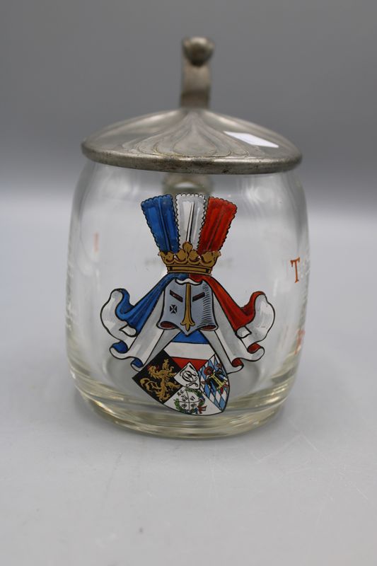 Emailmalerei Wappen u. Inschriften, unter dem Henkel Inschrift mit Datierung "Damenkneipe 1906"