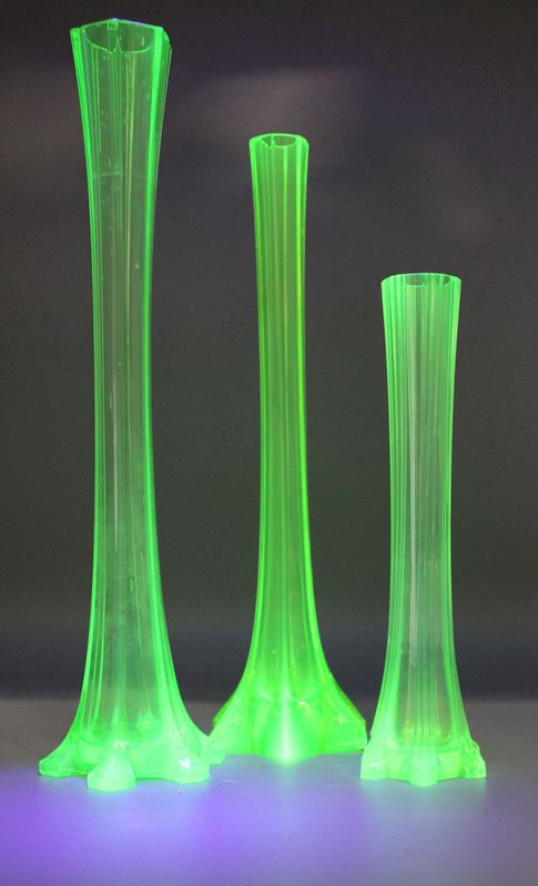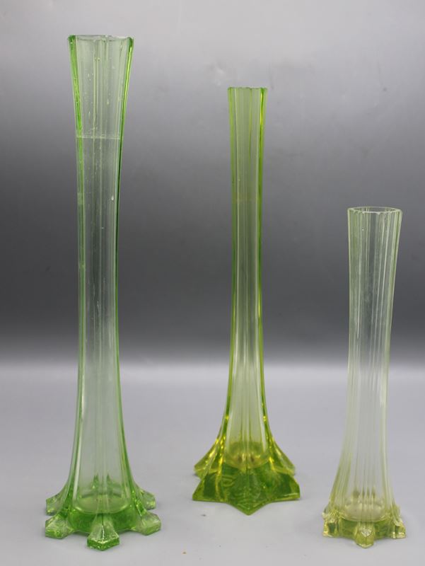 Uranglas Jugendstil Vasen 3 St. ca. 20,5 - 30,5 cm