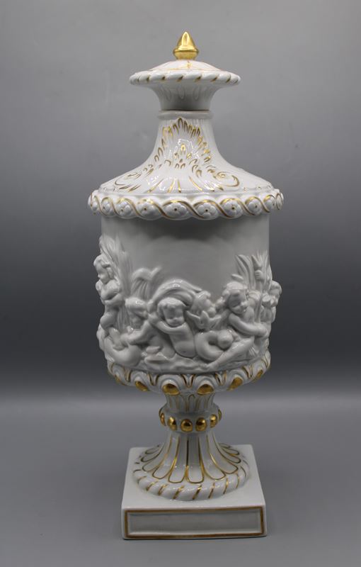 0637-Sitzendorf prunkvolle Deckel Amphore