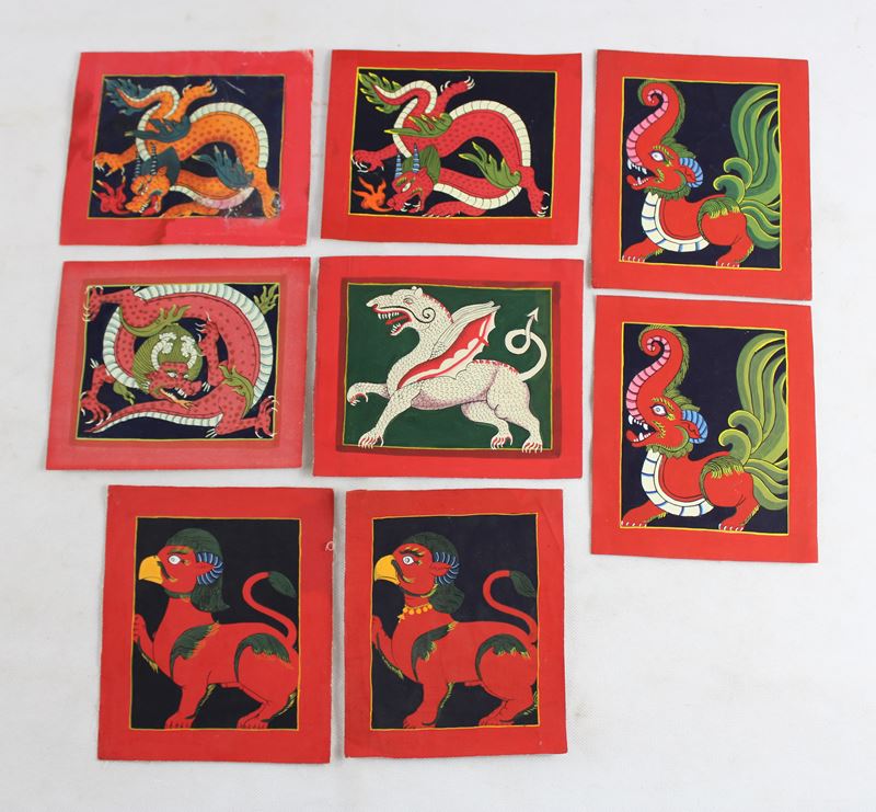 0639-Kleine handgemalte Bilder Nepal Thangka 8 St.