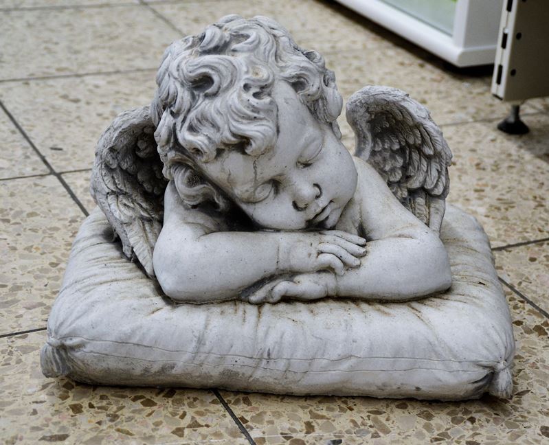 Garten Skulptur Engel auf Kissen Stein Höhe ca. 25 cm ca. 18,7 kg