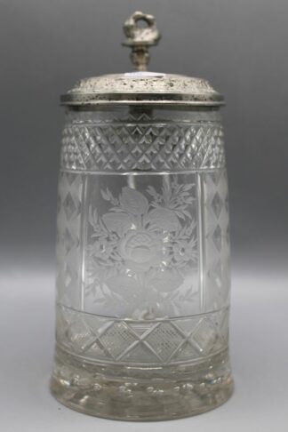 Glaskrug Zinndeckel mit kobaltblauen Glaseinsatz 19 Jh.
