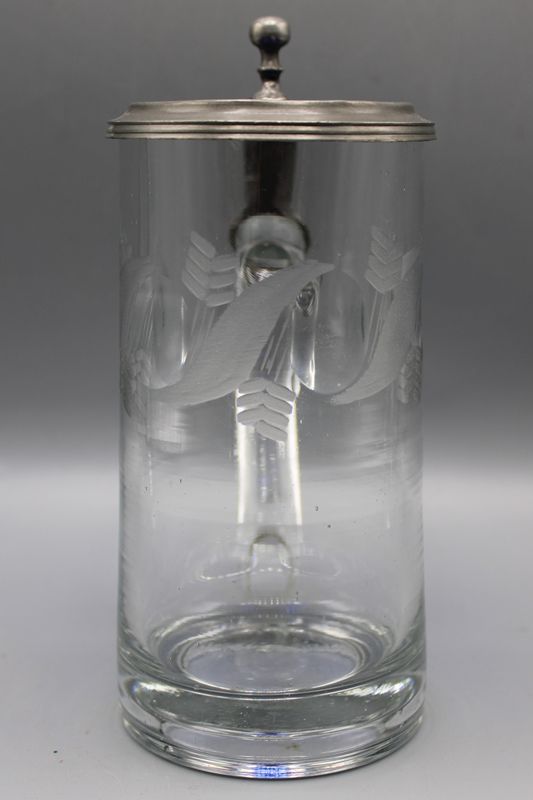 0642-Glaskrug Zinndeckel mit kobaltblauen Glaseinsatz 19 Jh.
