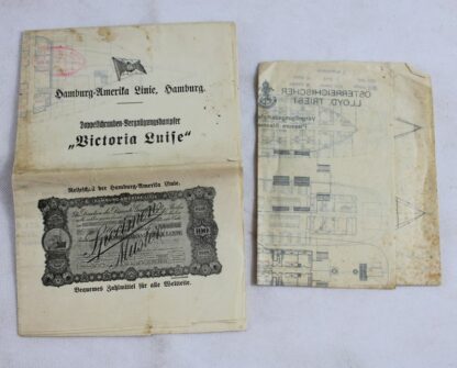 Alte Schiffspläne für Reisende 2 St., darunter Österreichischer Lloyd Triest Vergnügungsdampfer "Thalia", Hamburg Amerika Linie Doppelschrauben Vergnügungsdampfer "Viktoria Luise" (selten)
