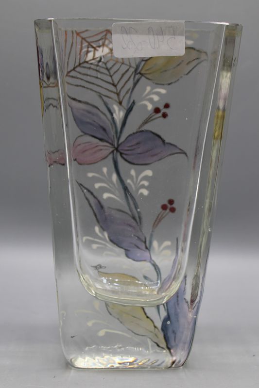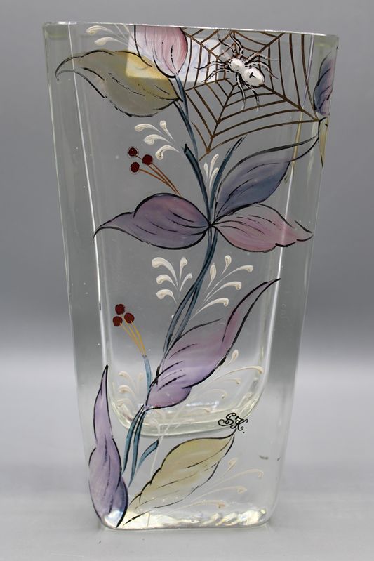 0643-Vase Glaskunst handbemalt Spinne im Netz 20 Jh.