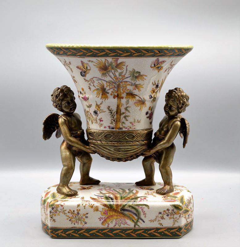 Wong Lee Putti Prunkschale Porzellan Messingmontierung 20 Jh., ca. 26 x 22,5 cm (H x B)