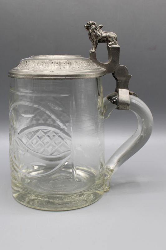 Glaswalzenkrug Deckel mit Schloss Hohenschwangau 19 Jh.