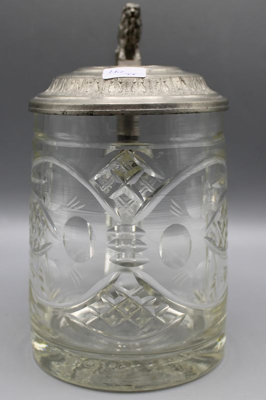 0647-Glaswalzenkrug Deckel mit Schloss Hohenschwangau 19 Jh.