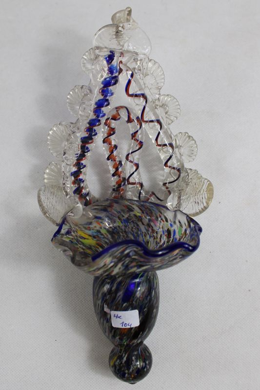 0649-Weihwasserkessel Glaskunst Bay. Wald 20 Jh.