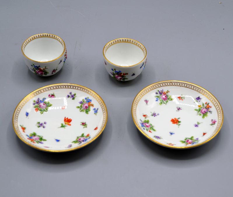 0651-Paar Meissen Koppchen Mokkatassen m. Unterteller um 1900
