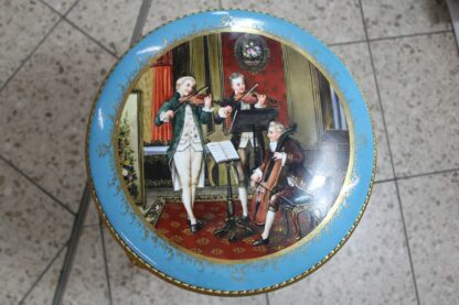 Prunkvoller Hocker handbemalt mit Rokoko Musikstunde 20 Jh.