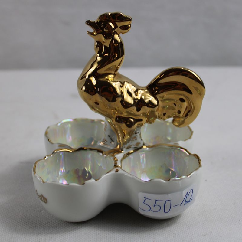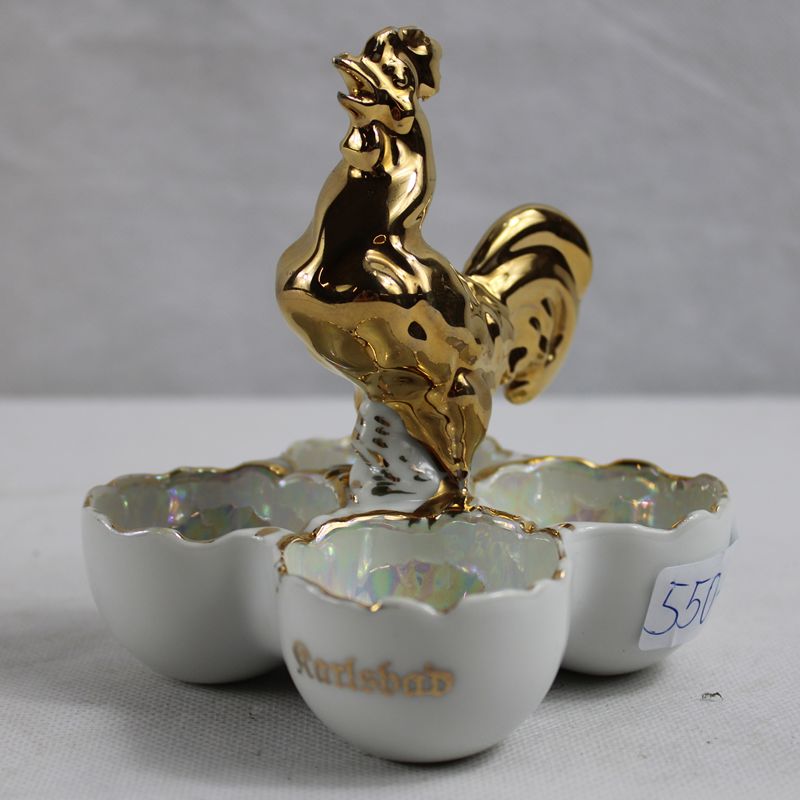Karlsbad Eierschale Eierplatte mit Hahn 1. H. 20 Jh.