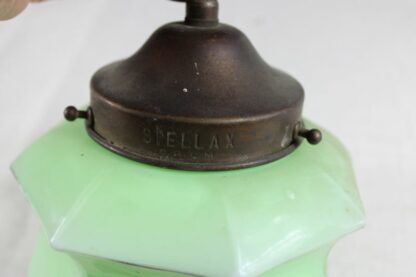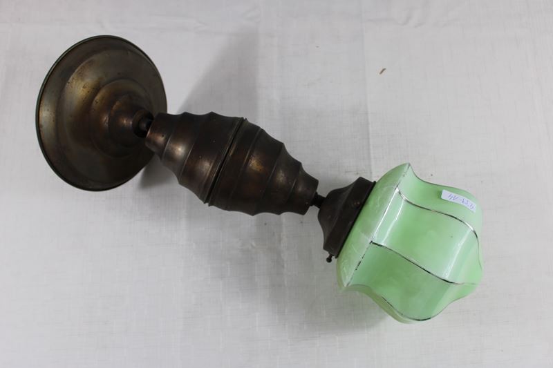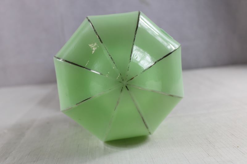 mit hellgrünem Glasschirm mit Silberstreifen, ca. 43 cm, Elektrik ungetestet (vom Fachmann prüfen lassen)