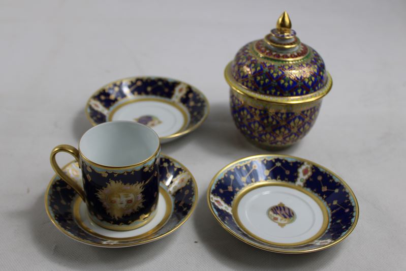 Tasse mit 3 Unterteller, Prunkdeckeldose nicht von Hutschenreuther