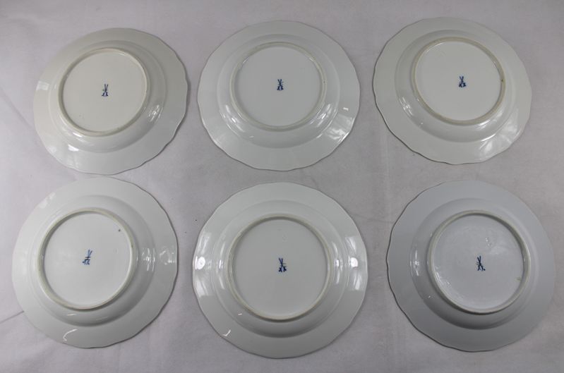 0666-Meissen große flache Teller florale Malerei 6 St.