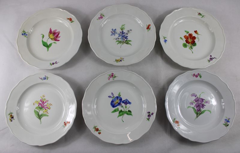 Meissen große flache Teller florale Malerei 6 St.