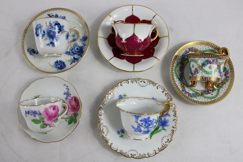 Meissen Sammeltassen Mokkatassen mit Unterteller etc. Konvolut 5 St.