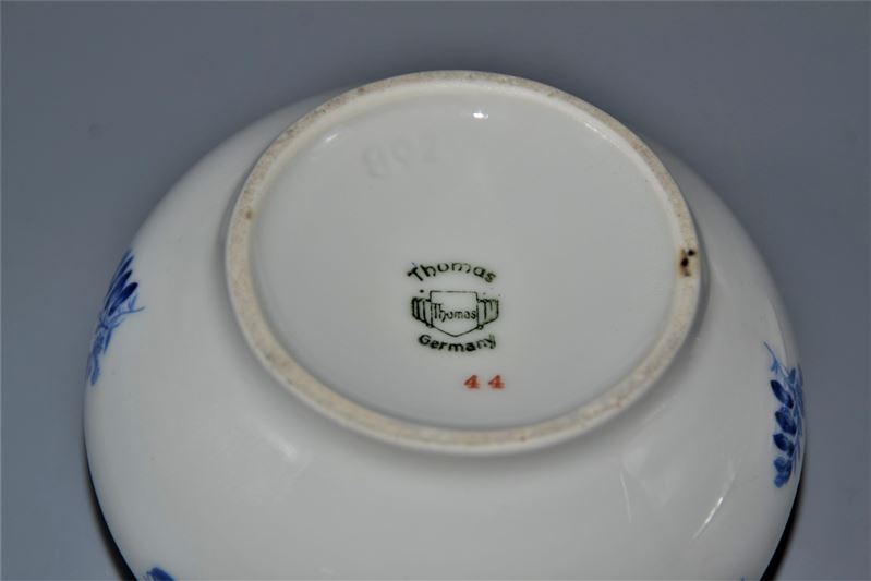Zuckerdose Thomas Porzellan mit 835 Silbermontur Hermann Bauer Schwäbisch Gmünd, Griff vom Deckel mit Klebespuren, Ø ca. 9,5cm Höhe ca. 7,5cm