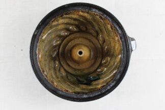 innen olivgrün glasiert, winziges Loch, 1 Loch alt mit Zinn restauriert, ca. 30 cm (ohne Heber)