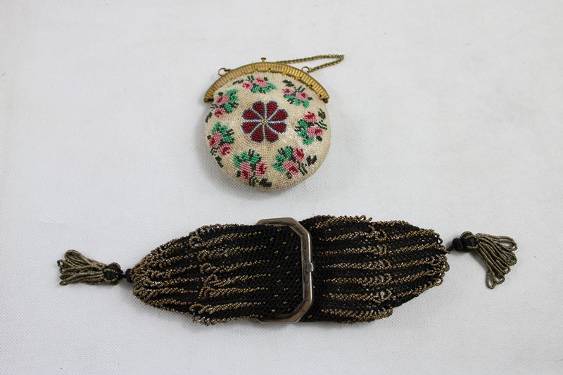 0701-Geldbörse u. Geldkatze Perlstickerei um 1900