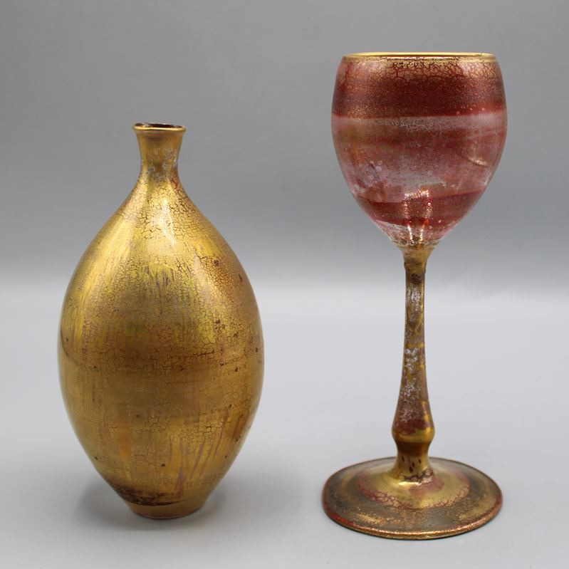 Eberhard Zell Geesthacht Glaskunst 3 St., Vase ca. 15 cm signiert am Boden, Glas ca. 18 cm signiert oben am Fuß, kegelförmige Vase (ohne Halter) ca. 11 cm signiert außen