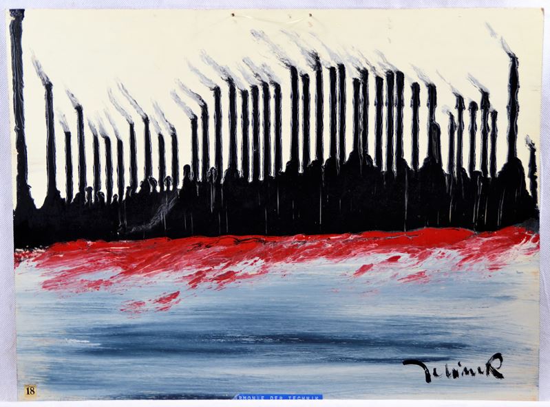 Jelinek Harry ( 1905 Tschechien - 1986 Guarene / Italien ), Gemälde ,, HARMONIE DER TECHNIK ", Mixtur auf Holzspanplatte, ca. 56 x 42cm, signiert unten recht, aus Privatsammlung eines Freundes von Harry Jelinek