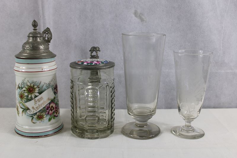 0716-Alte Bierkrüge u. Gläser Konvolut 4 St.