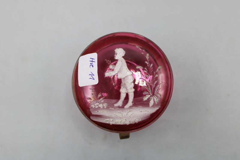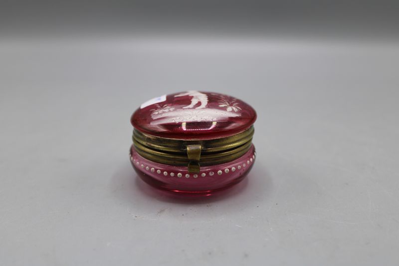 0721-Glasdöschen rubinfarben Schneemalerei um 1900