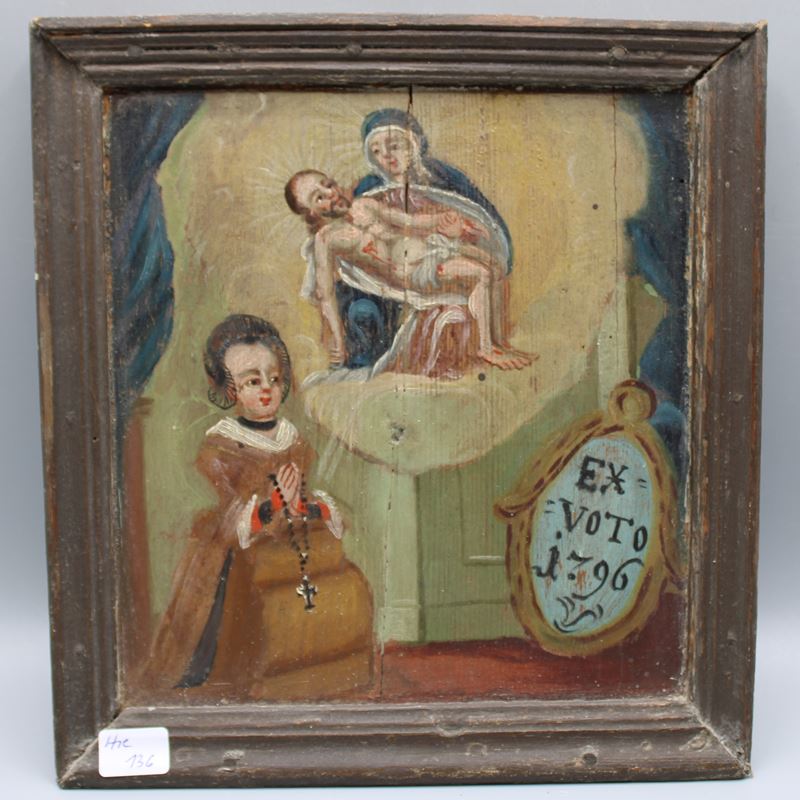 Votivtafel ex voto 1796 Öl auf Holz, ca. 20 x 18,5 cm